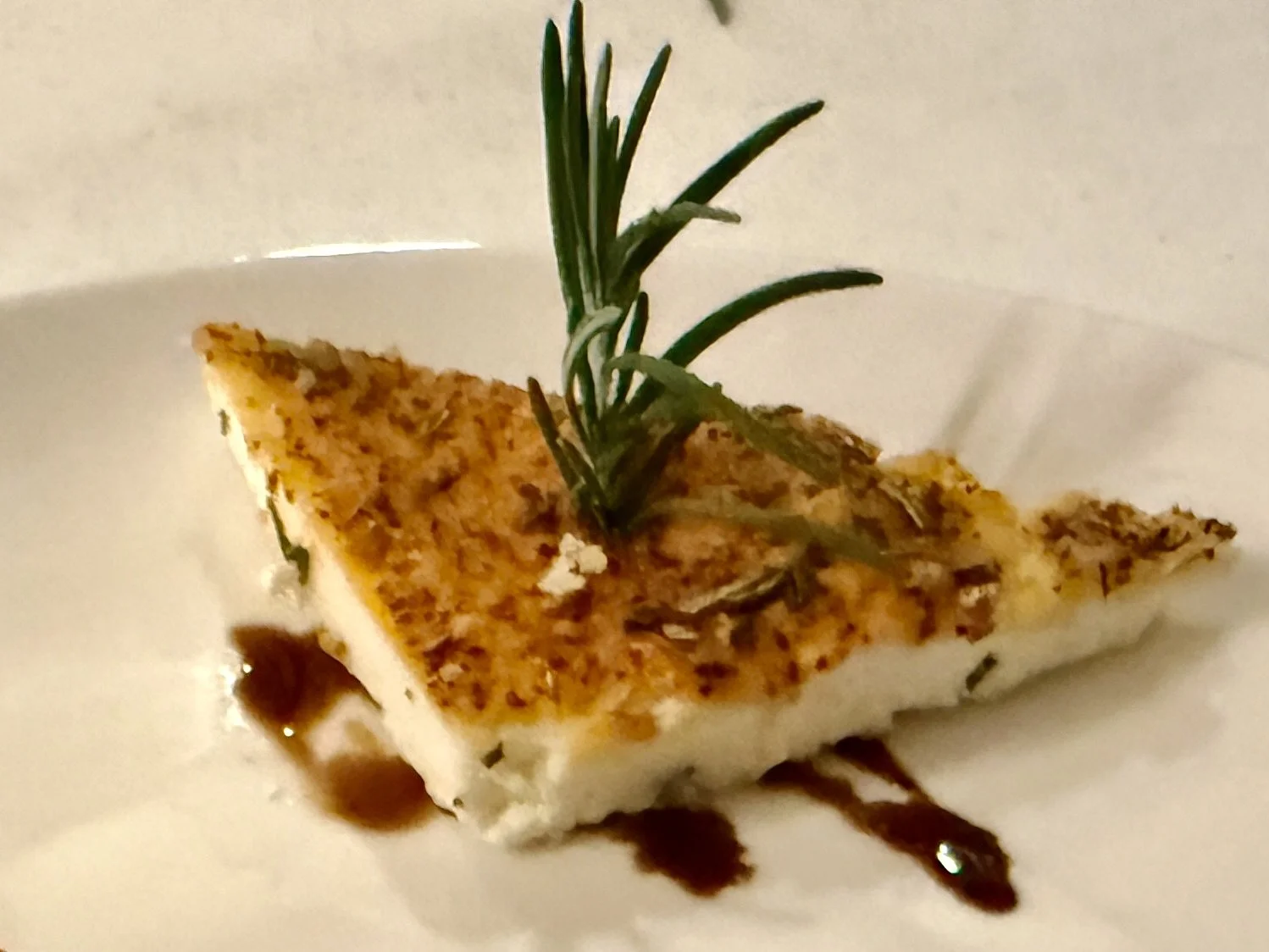 A classic Sicilian baked ricotta reimagined with almonds—silky, aromatic, and entirely plant-based. Hints of rosemary and lemon lift its flavor while balsamic glaze adds a gentle sweetness.